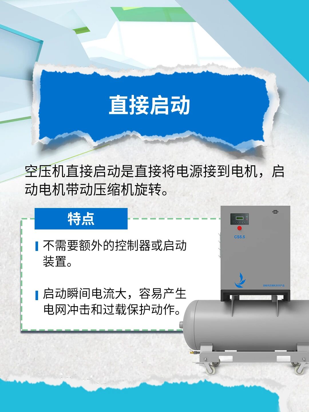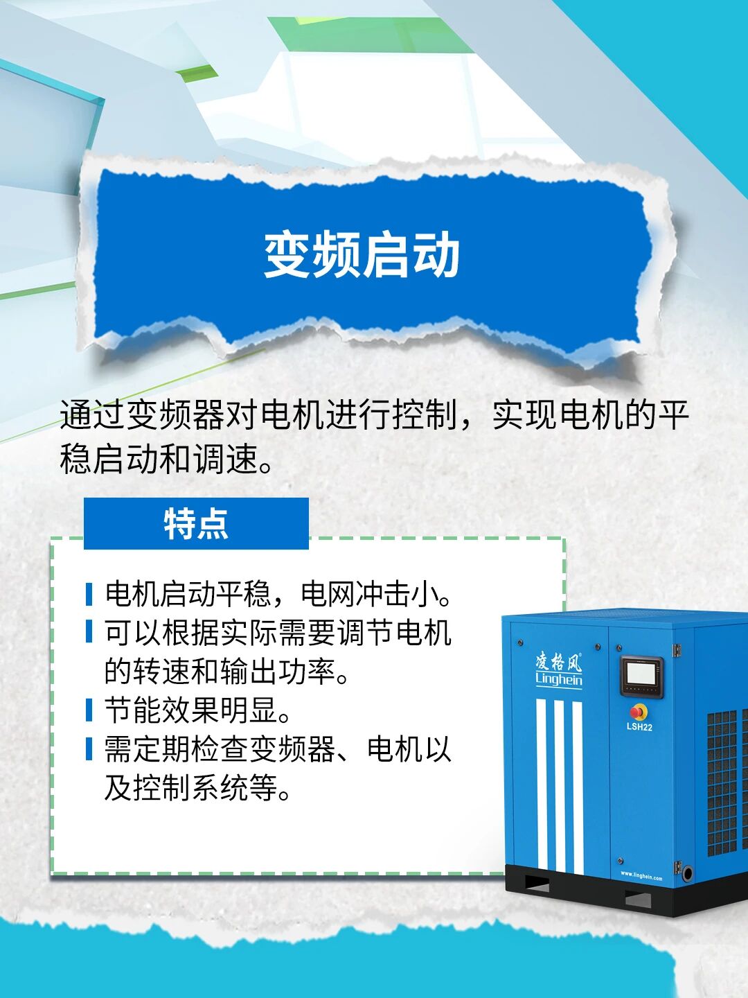 电网容量、设备特性、运行条件、环境条件、成本控制等,从产品的整个生命周期考虑,选择合适的空压机启动方式。